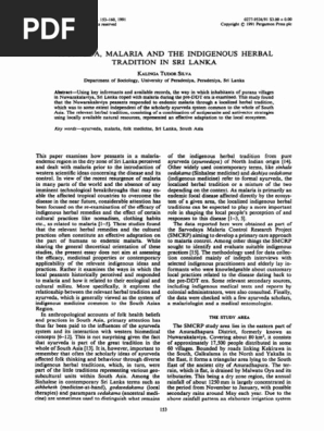 1991 Silva Ayurveda Malaria And The Indigenous Herbal Tradition In Sri Lanka Herbalism Ayurveda